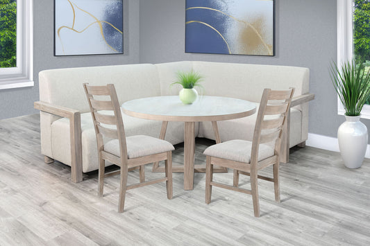 4-Piece Upholstered Dining Set (Bench, Round Table, 2 Side Chairs) - Wheat