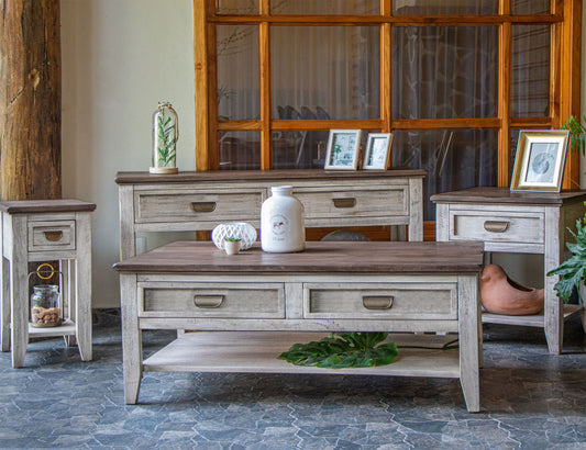 Sahara - 2 Drawers Sofa Table - Light Cream / Brown Caramel
