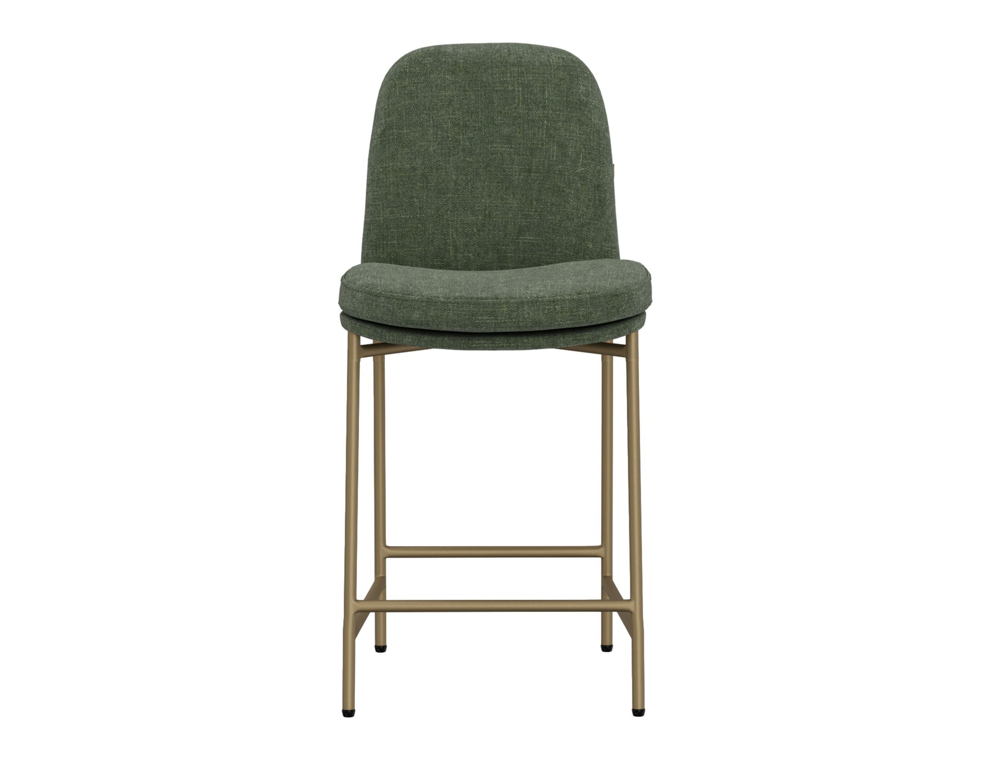 Seating - 24" Upholstered Barstool, Wooden Frame & Metal Base - Olive Green