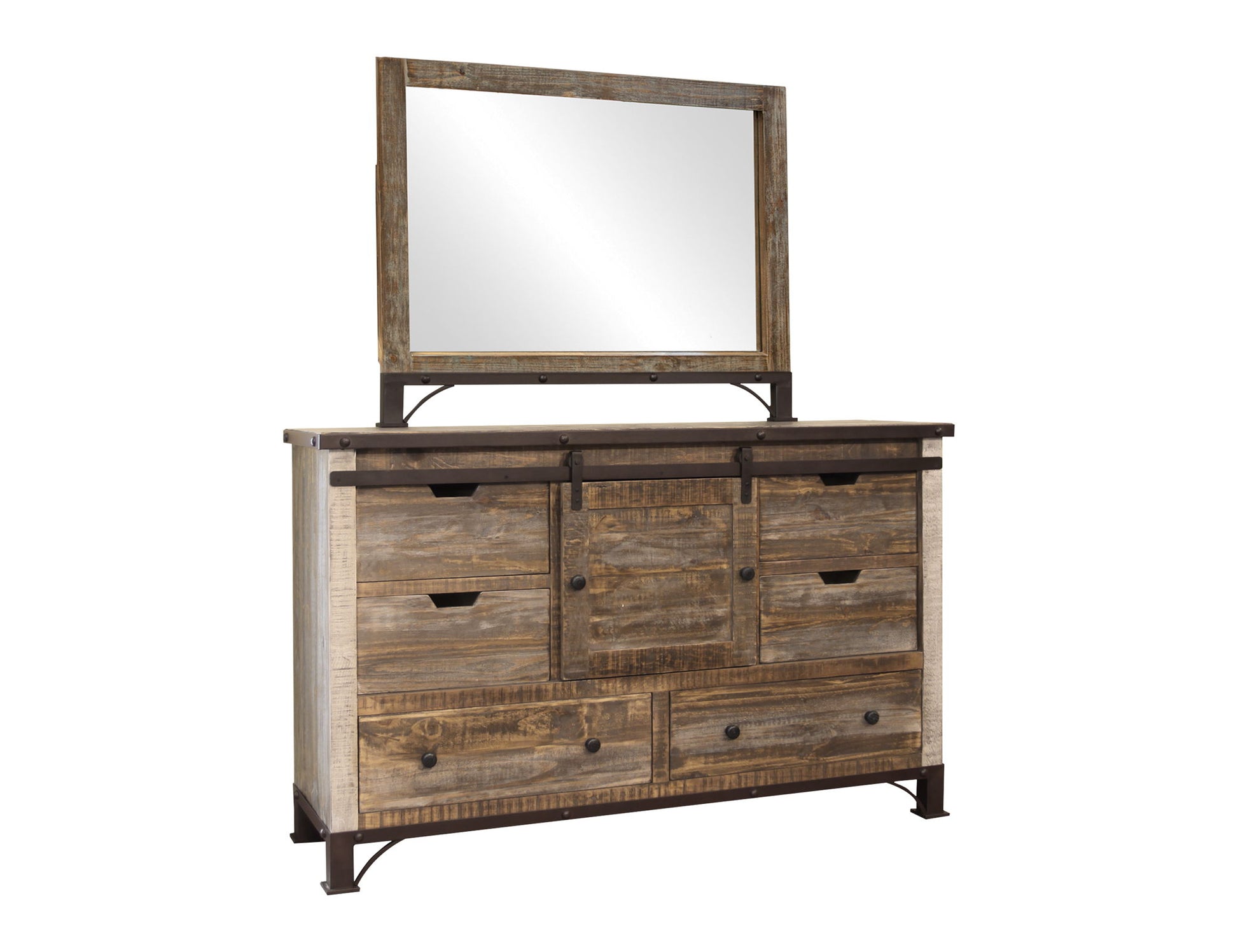 6 Drawer, 1 Sliding Door, Dresser. The Antique collection is meticulously crafted from solid pine wood, featuring a captivating hand-distressed look in a multicolor finish. This collection serves as the perfect rustic addition to your home.