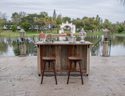 Wooden Seat Adjustable 24-30" Swivel Iron Base Barstool. Bring rustic charm to your home with the Antique Multicolor adjustable swivel barstool. This barstool features a multi-color wood grain seat and an industrial hand-wrought iron base. Its backless design allows it to easily tuck under tables and countertops, saving space.