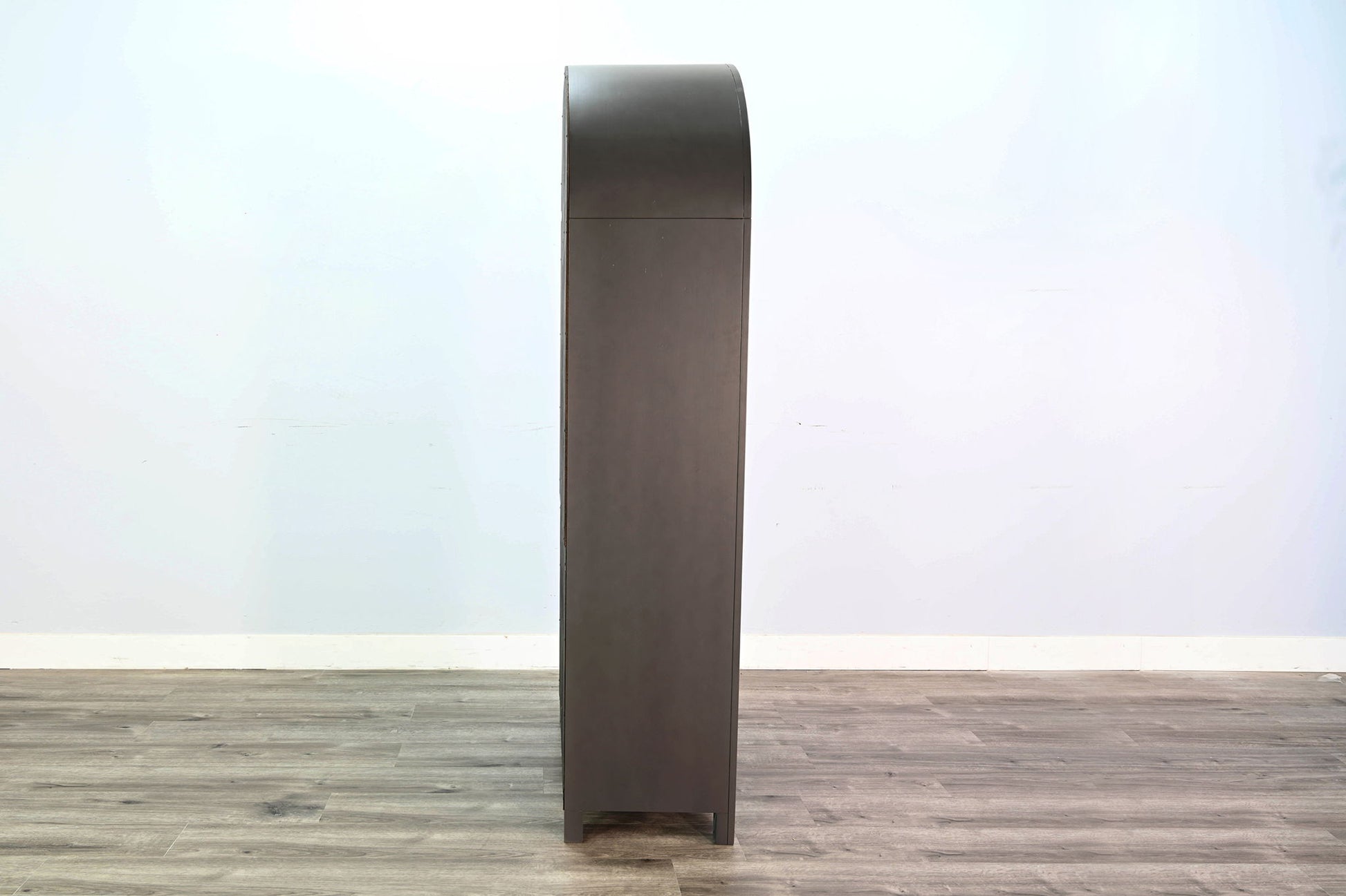 Introducing our Arched Wood Display Cabinet, a harmonious blend of timeless design and functional elegance now featuring solid wood doors. Crafted with precision and an eye for detail, this exquisite piece showcases a beautifully arched top that adds a touch of sophistication to your space. The wood construction, finished with meticulous care, not only highlights the natural grain but also radiates warmth, creating an inviting ambiance in any room. The solid wood doors, meticulously designed for both durability and aesthetic appeal, provide a tasteful alternative, ensuring a sense of privacy for your displayed items.