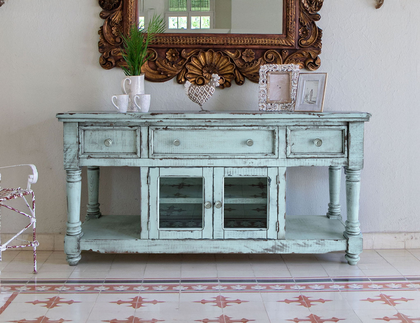 Aruba - TV Stand / Console With 4 Drawers And 2 Doors - Sky Blue
