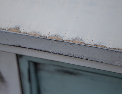 - A white antiqued finish is applied using a hand-rubbed technique in a multi-step process. Doors and drawers feature a sky blue tone.