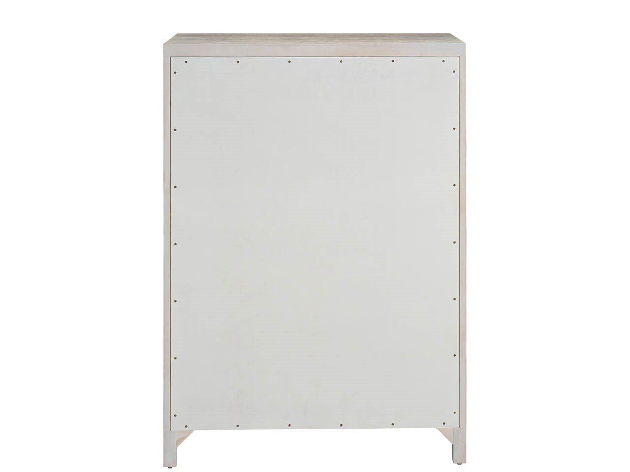 The Carmen Five-Drawer Chest is a striking piece of furniture that combines modern design with functional storage. Its tall silhouette, accented by distinctive vertical wood detailing, creates a sense of modern elegance. The five spacious drawers offer ample storage, while the rich finish adds a touch of sophistication. This versatile piece is a captivating addition to any bedroom.