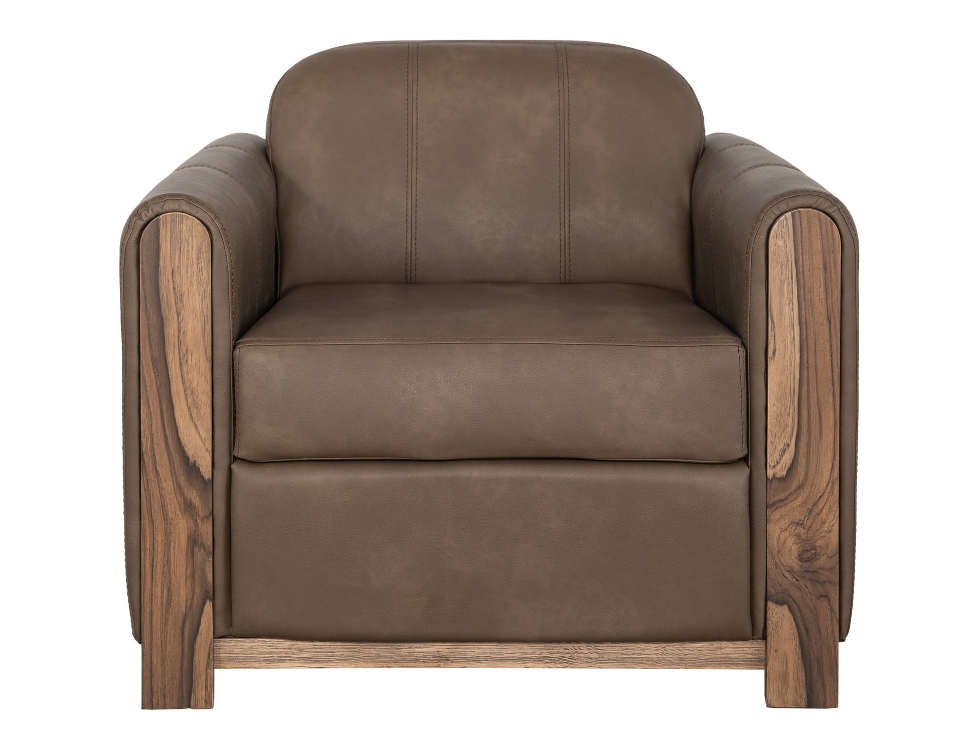 Wooden Frame & Base, Armchair. The Balam collection features a simple and elegant design. The sturdy frame is made from pine and teak veneer and carefully finished to create a timeless and sophisticated look. Skilled artisans upholster each piece in premium fabrics that complement the natural beauty of the wood. It is designed for both comfort and style.