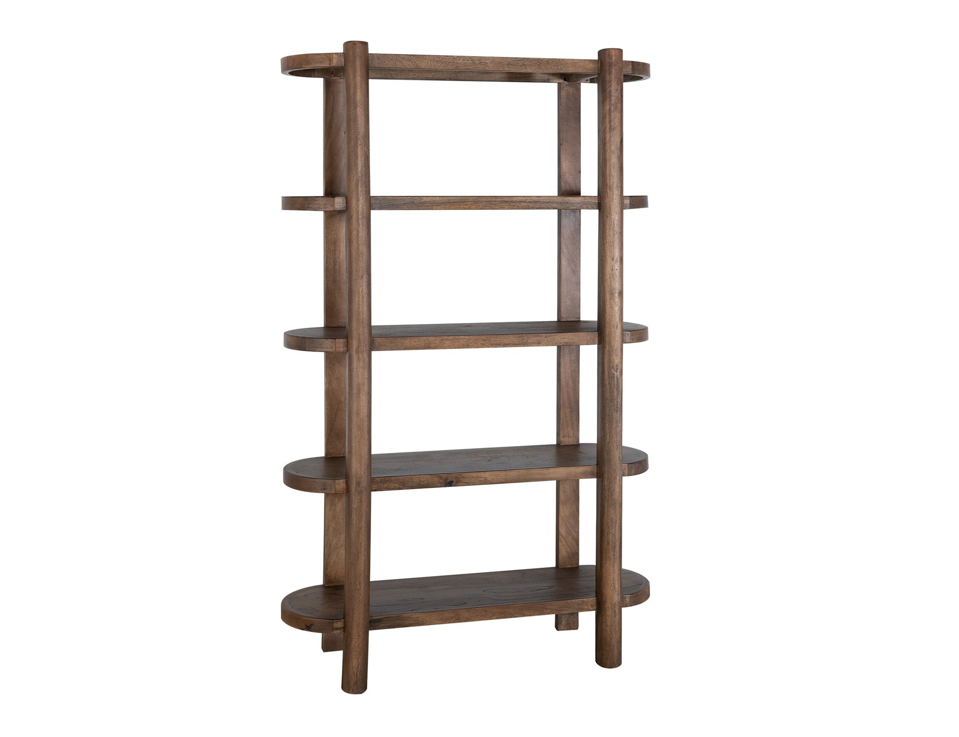 4 Shelves, Bookcase. Our exquisite Balam collection is meticulously handcrafted using high-quality mango and teak wood. This simple yet striking collection is designed to infuse your space with an organic, modern aesthetic. The bookcase boasts a unique organic shape, featuring elegantly curved oval shelves and rounded legs, adding a touch of sophistication to any room.