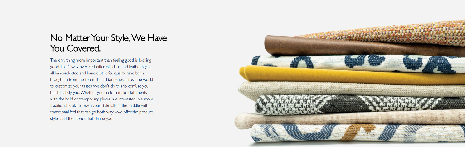Best Home Furnishings is customizable with your choice of fabrics please come into our store or send us an email at info@fendons.com or give us a call at (760) 873-4698 for more information.