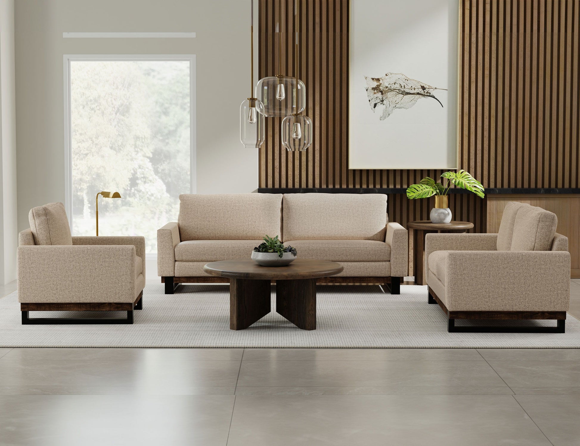 Metal & Wood Base, Sofa. Elevate your living space with the luxurious comfort and timeless style of the Blackburn collection. This sofa features a sturdy base crafted from a combination of wood and metal, creating a seamless fusion of materials that radiates a contemporary aesthetic. The Blackburn collection is your key to creating the ideal haven for gatherings and relaxation.