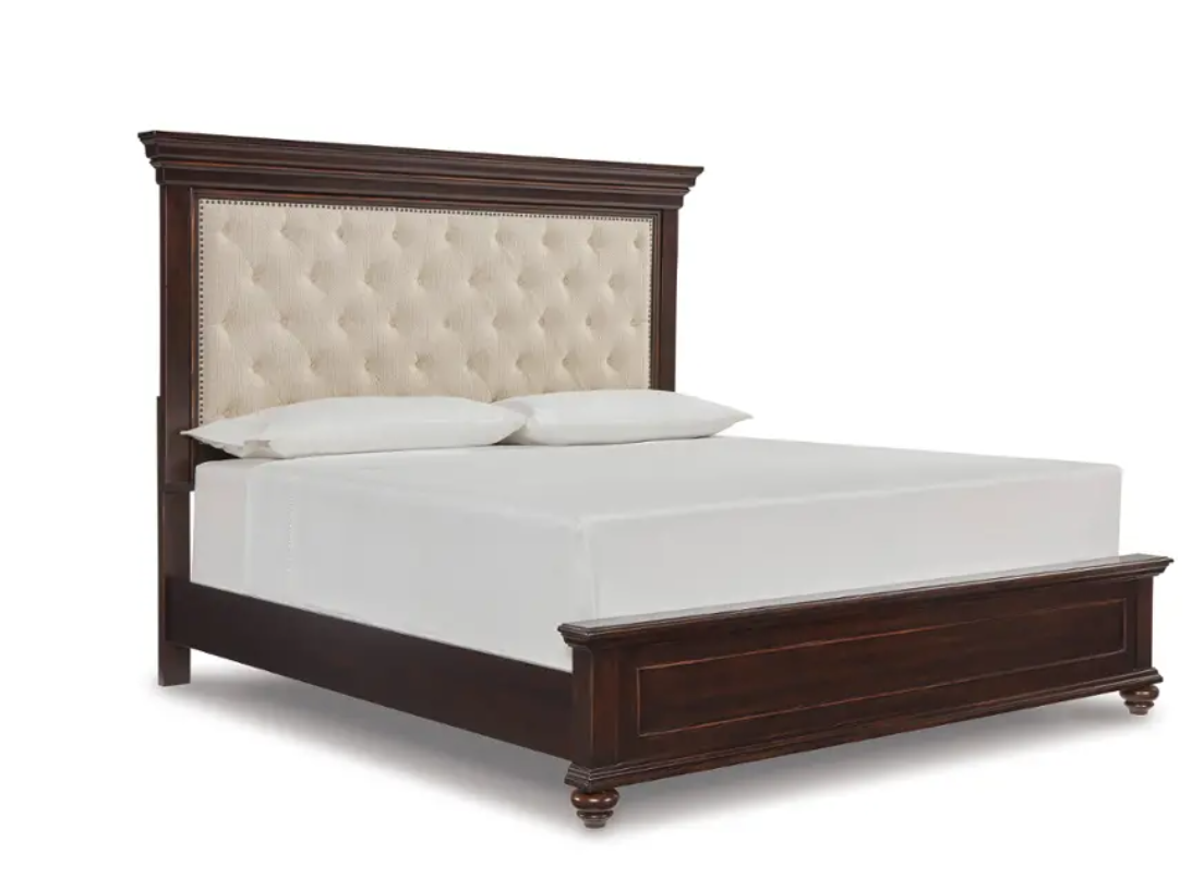 Timeless traditional style in a rich dark walnut finish with hand rubbed highlights. Design features generously scaled moulding details. Mansion style headboard options offer a choice of picture framed panel or inset tufted.