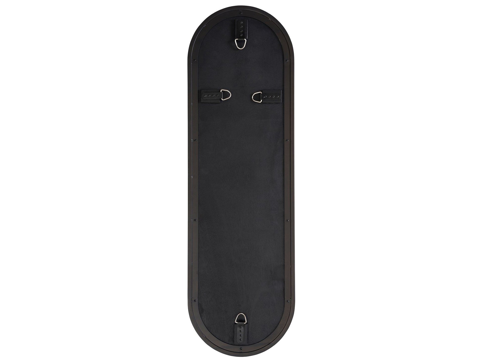 A sleek, oval silhouette framed in a dark slate metal, the Olsen Mirror captures the essence of transitional design, merging a modern aesthetic with classical elegance.