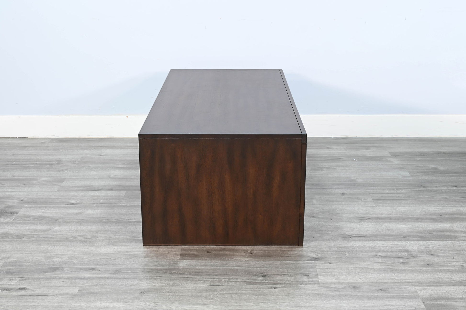 Coffee Table With Sliding Doors & Casters - Coffee Bean