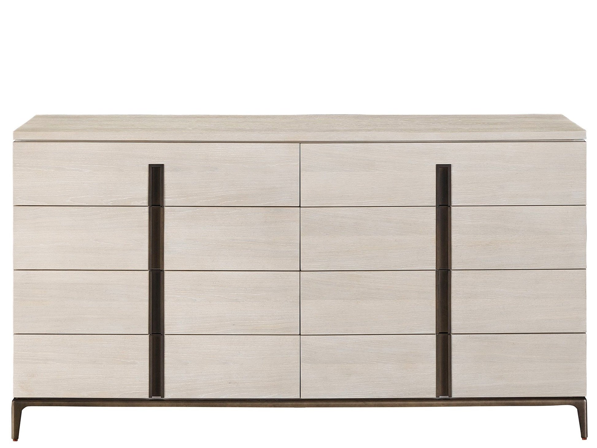 The spacious storage capabilities of the Maren Dresser Drawer are encased with a mixture of cedar and white oak panels, subtly accented with satin bronze hardware and base frame.