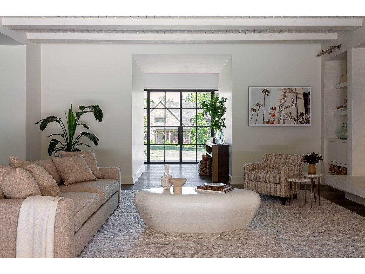 Softened edges and plaster texture give the Piedra Cocktail Table a decidedly organic feel.