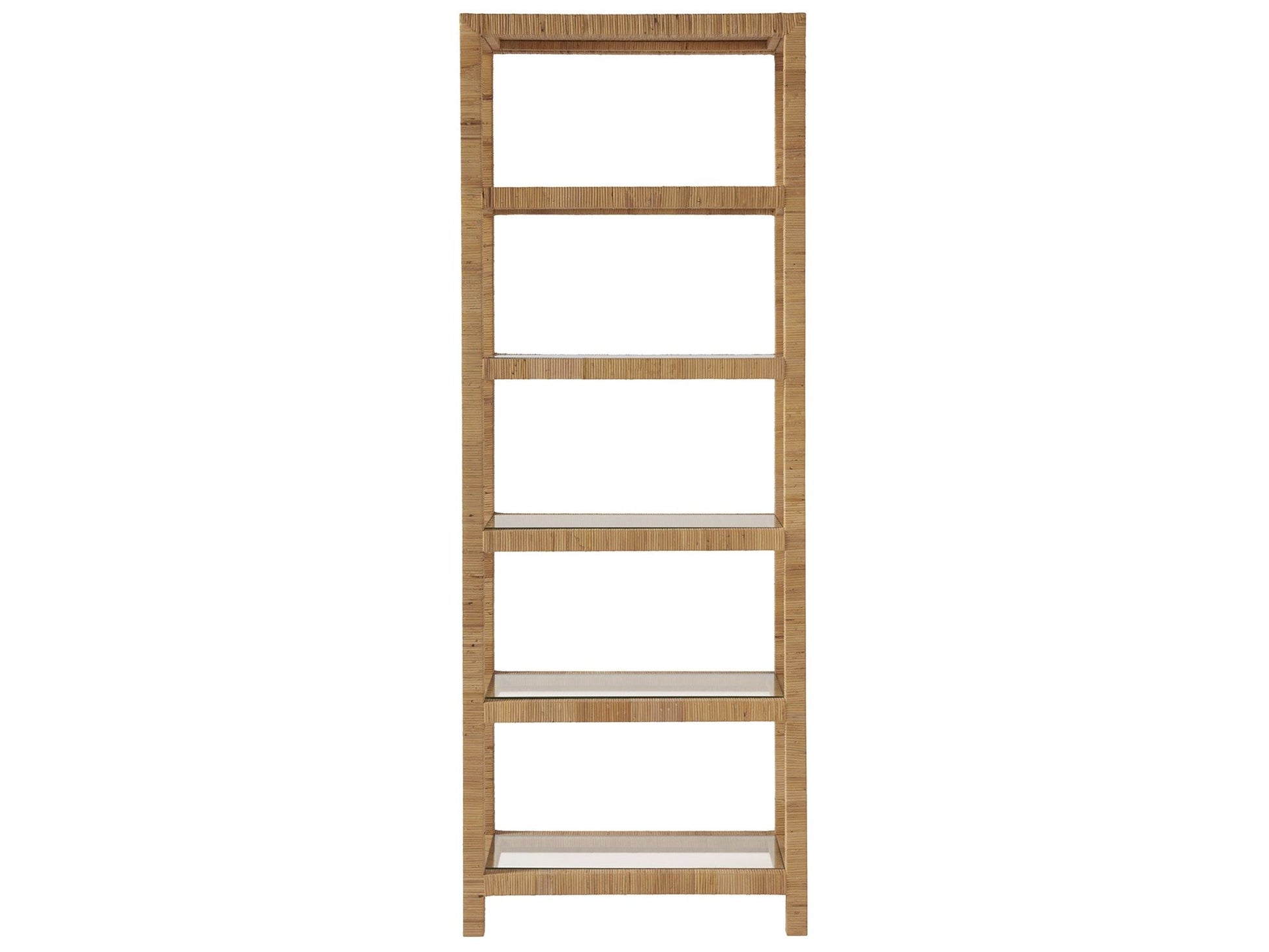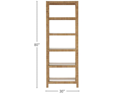 With five glass display shelves designed within a wrapped rattan frame, the Long Key Etagere offers both a gentle repose as well as a convenient space for books, small trinkets, and other home accessories.