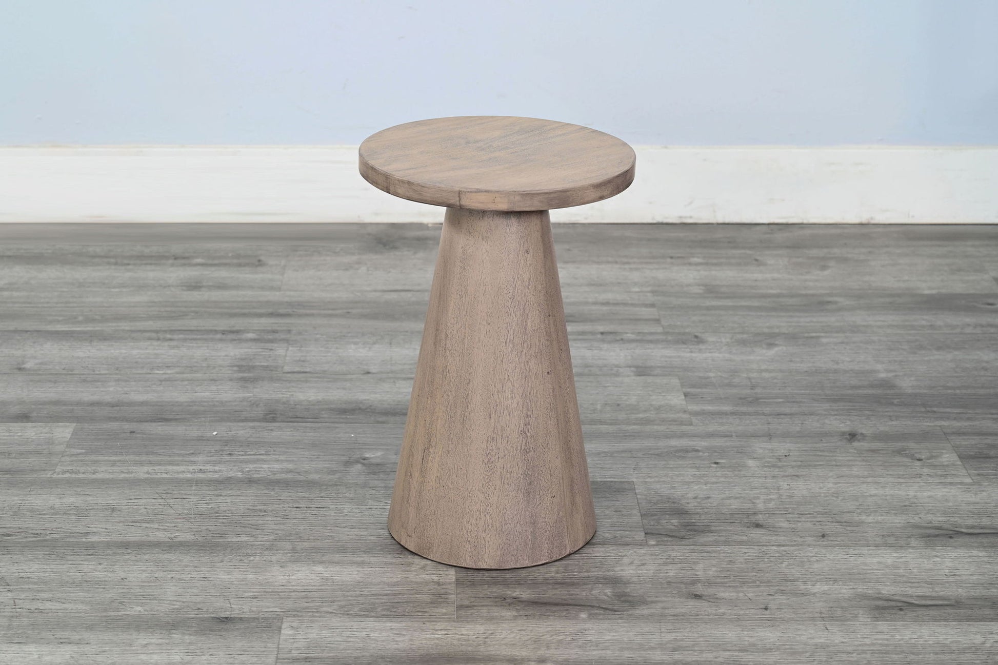 Compact in size yet bold in style, this round cone base accent table adds a sculptural touch to any space. Standing 19" high with a 13" round top, it’s the perfect perch for a drink, book, or decorative display. The smooth, tapered base offers a modern silhouette while the finish brings natural character to your décor. Ideal for use beside a chair, sofa, or as a standalone statement piece.