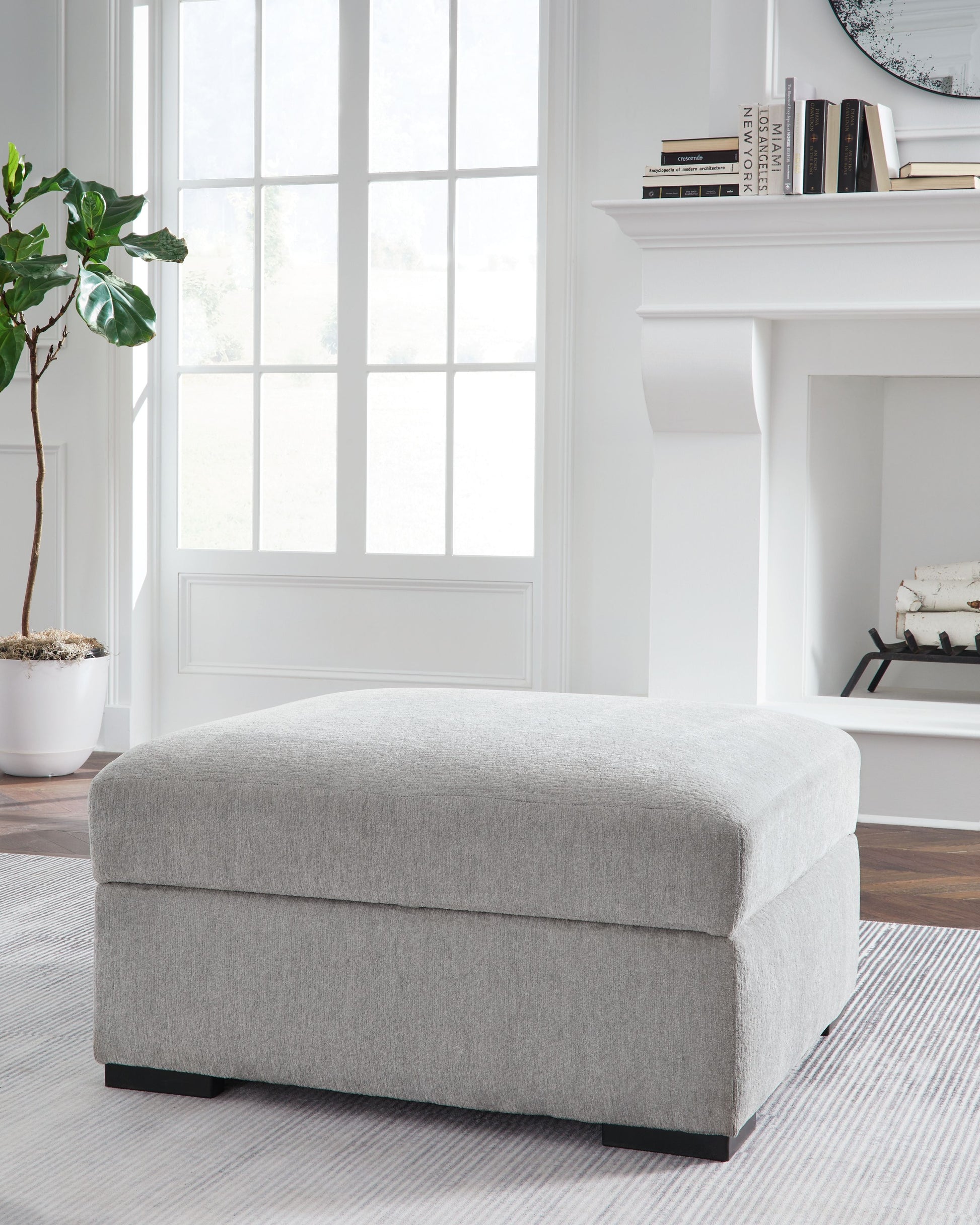 This ottoman's contemporary character and neutral hue make it a practical and stylish choice for high-traffic areas. Stressed about upkeep? No need to sweat spills and messes—the Next-Gen Nuvella™ performance fabric is soft and easy to clean, making it perfect for active households. This ottoman is ideal for hosts with the most, providing easy-to-access storage that keeps essentials convenient but out of sight. Both durable and inviting, it's the only answer to a busy lifestyle.