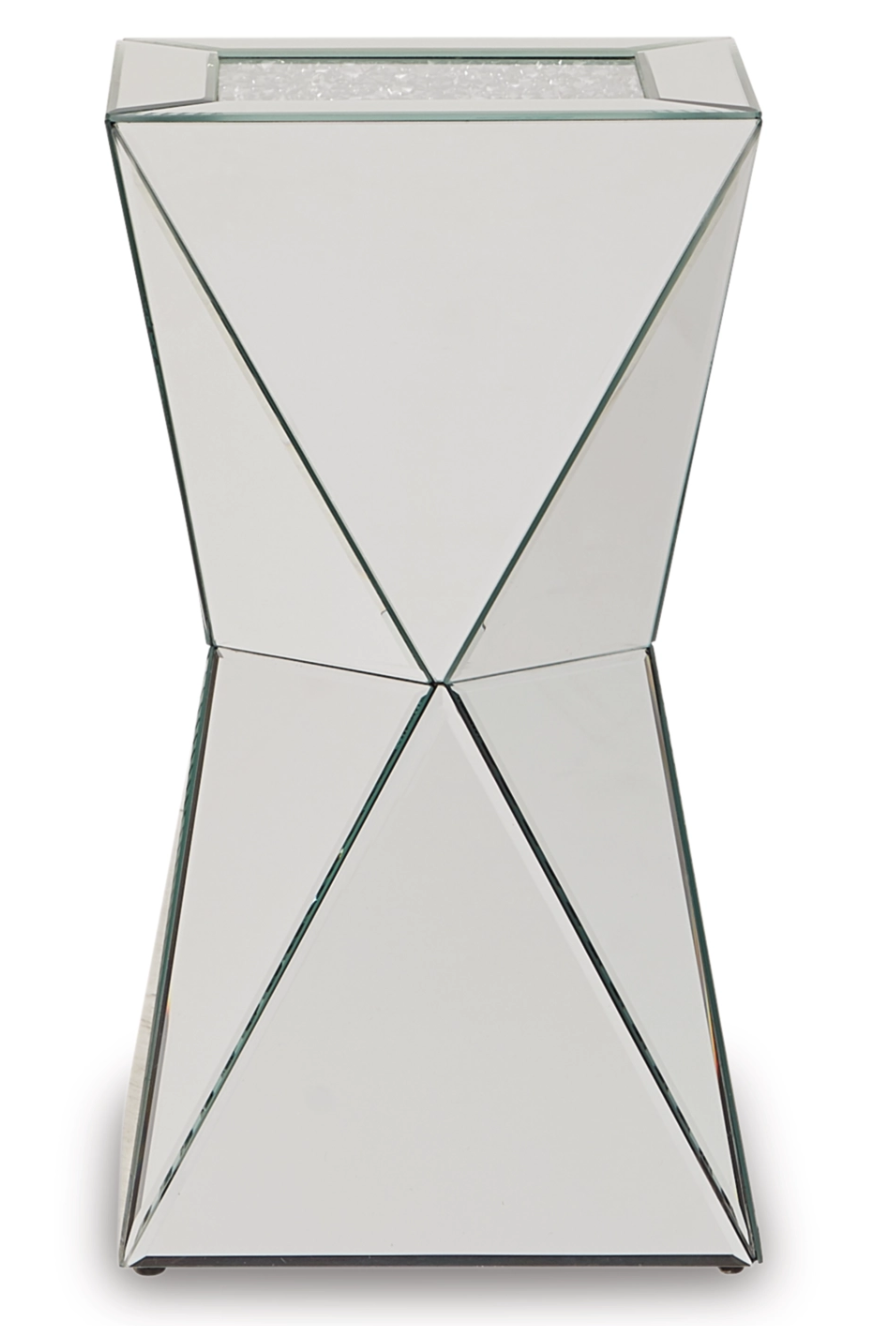 Dynamic yet sophisticated, the Gillrock accent table is sure to make a statement. The geometric design, constructed of beveled mirror, is unique and contemporary. Metallic beads add a glitzy touch, making this accent table the perfect small addition to elevate any room.