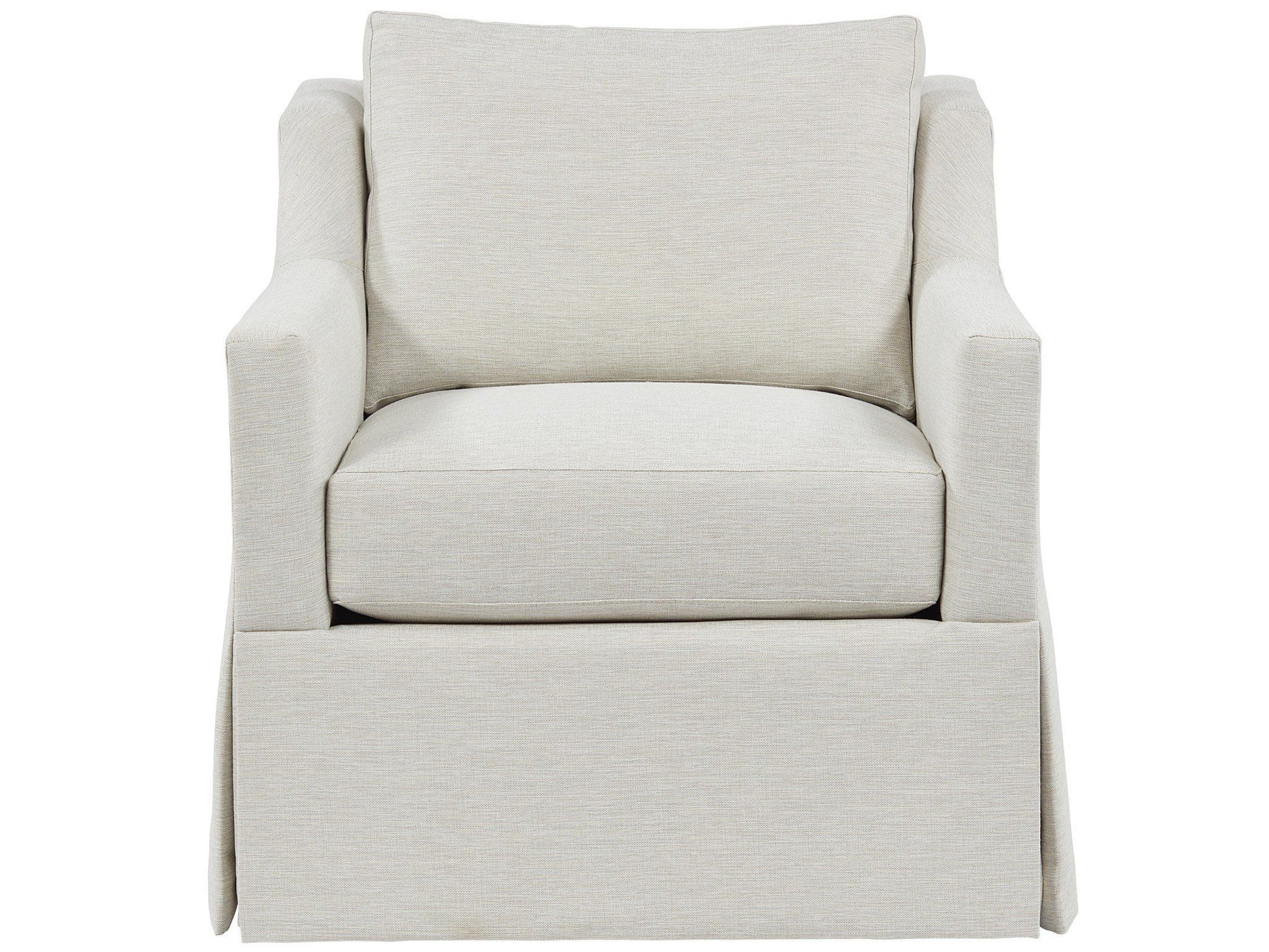With a simple skirting detail and a softly curved body, the Grant Swivel Chair brings a casual-chic style to living spaces while offering premium relaxation with its versatile swivel base.