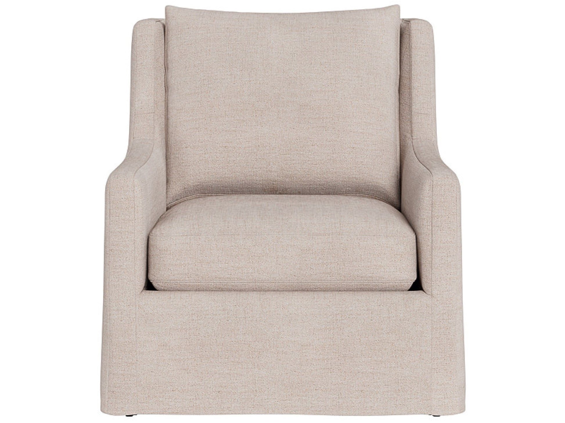 The Hudson Slipcover Chair is upholstered as a slipcover for a more laid-back appearance. This design choice aims to create a relaxed atmosphere and a casual feel in your space.