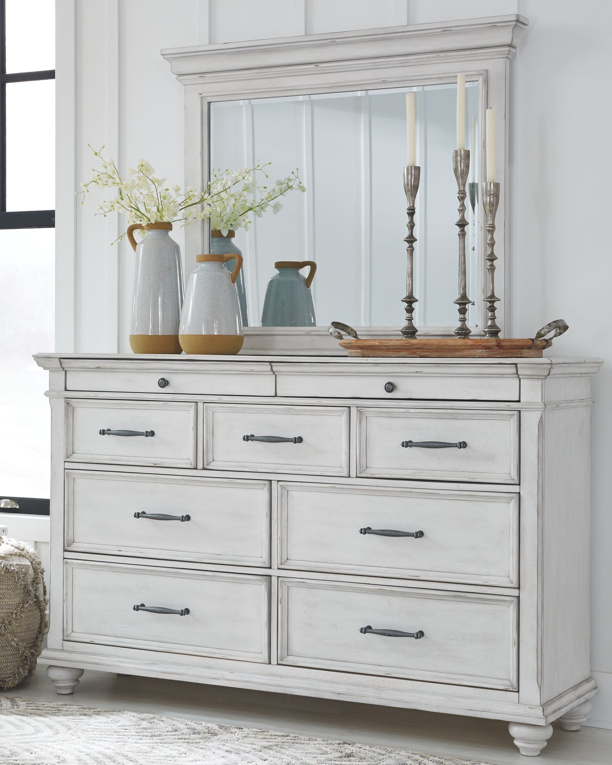 Kanwyn - 5 Pc. - Dresser, Mirror, King Panel Bed - Whitewash