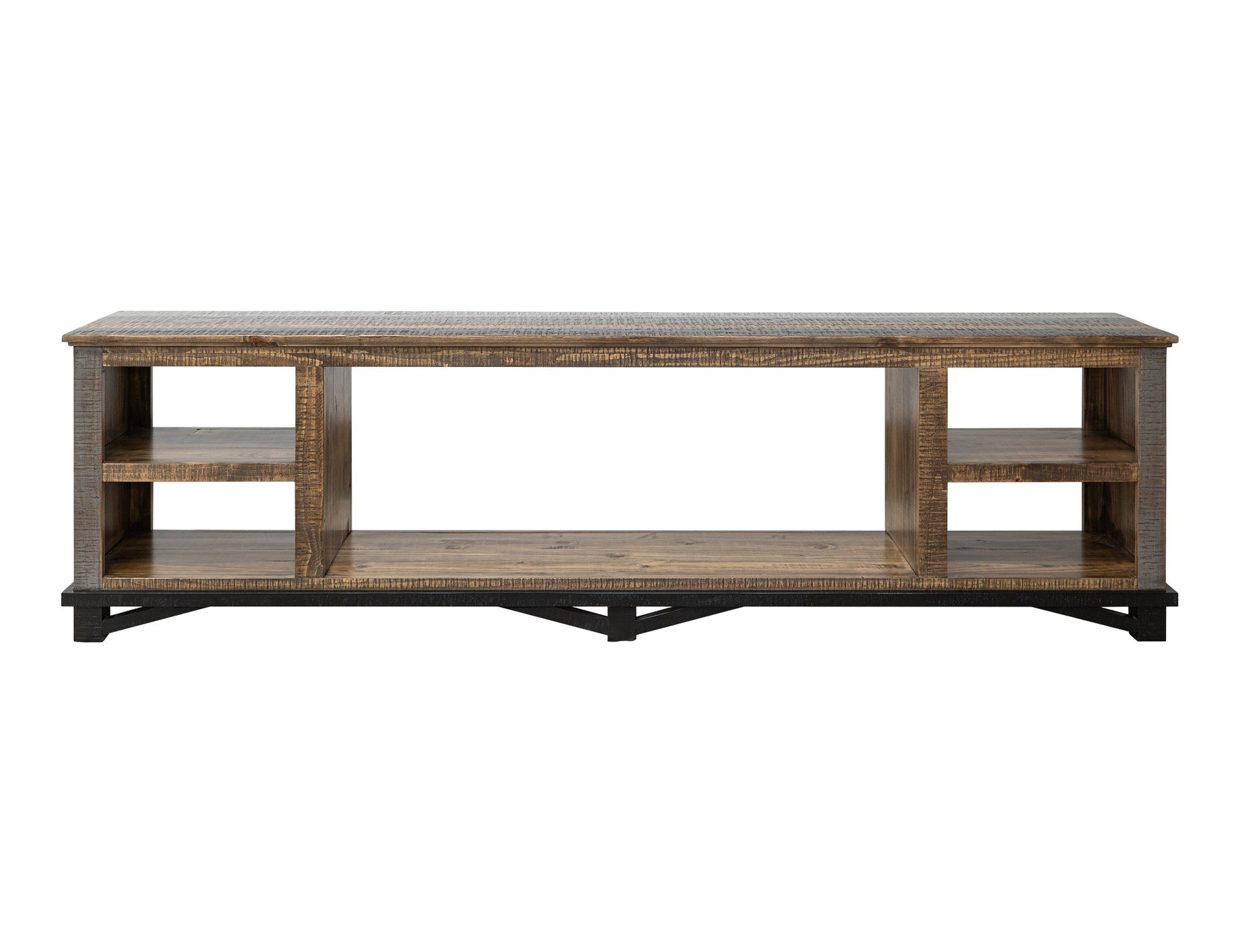 4 Shelves Fireplace TV Stand. The Loft Brown Collection is constructed using pine wood that has been hand-stained and distressed. This beautiful collection features a wide range of high- and low-finish colors, making it a striking addition to any room décor you choose to design.