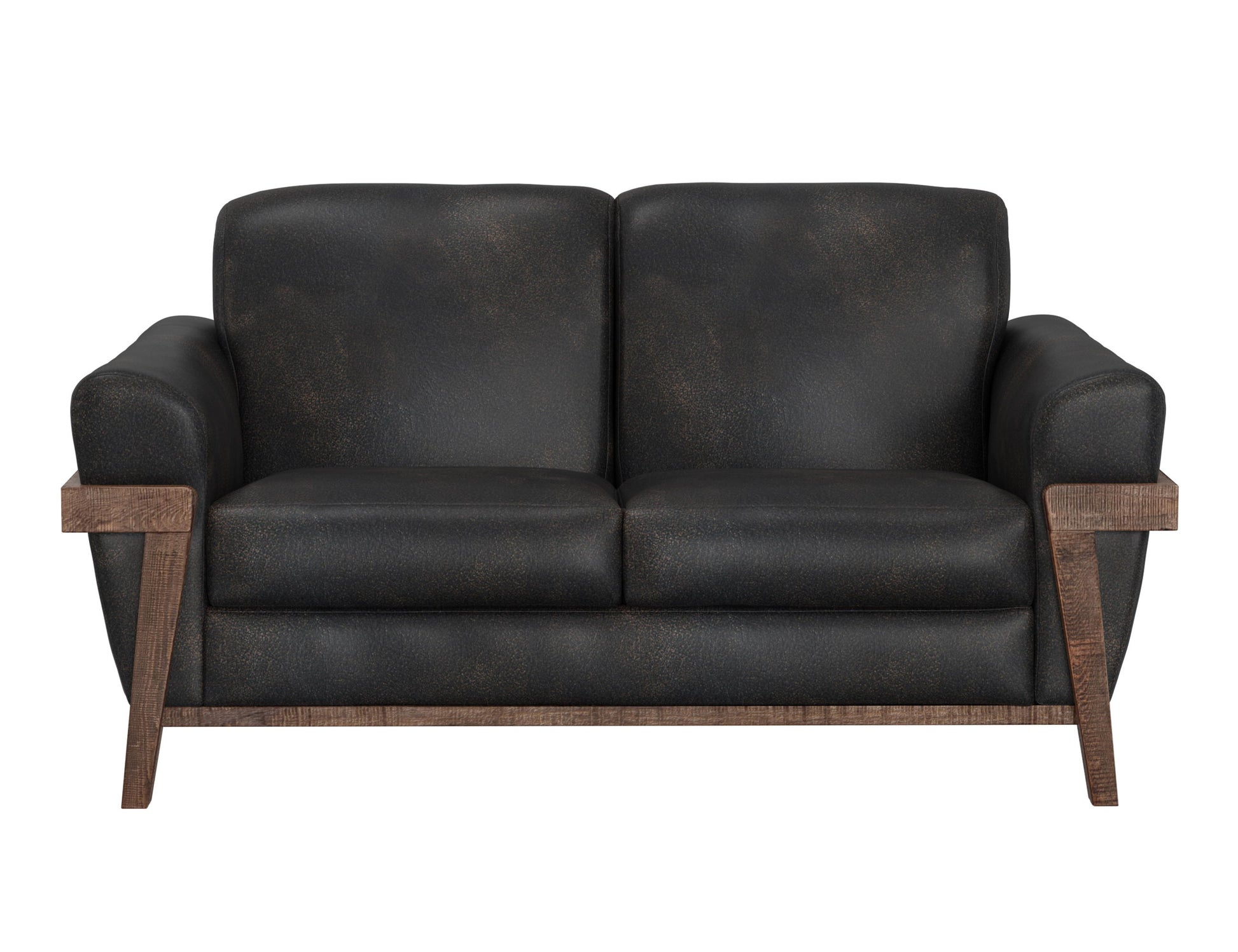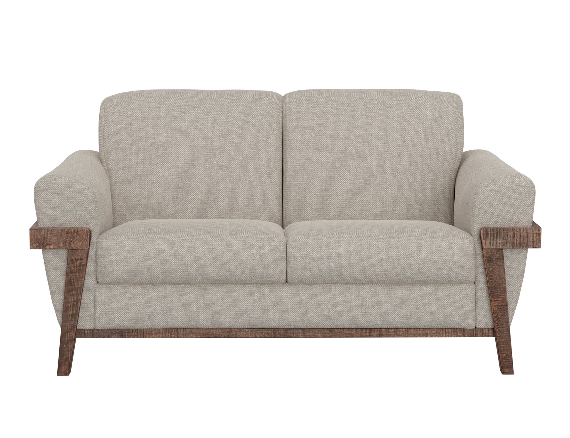 Wooden Frame & Base, Loveseat. Introducing our captivating Loft Brown Collection, where traditional design seamlessly merges with mid-century modern details in this stunning transitional piece. With its distinctive exposed pine wooden legs and frame, retro-inspired rolled arms, and meticulous craftsmanship, this collection features solid wood and 15mm-thick, 5-layer plywood construction, ensuring both the strength and durability of the frames.