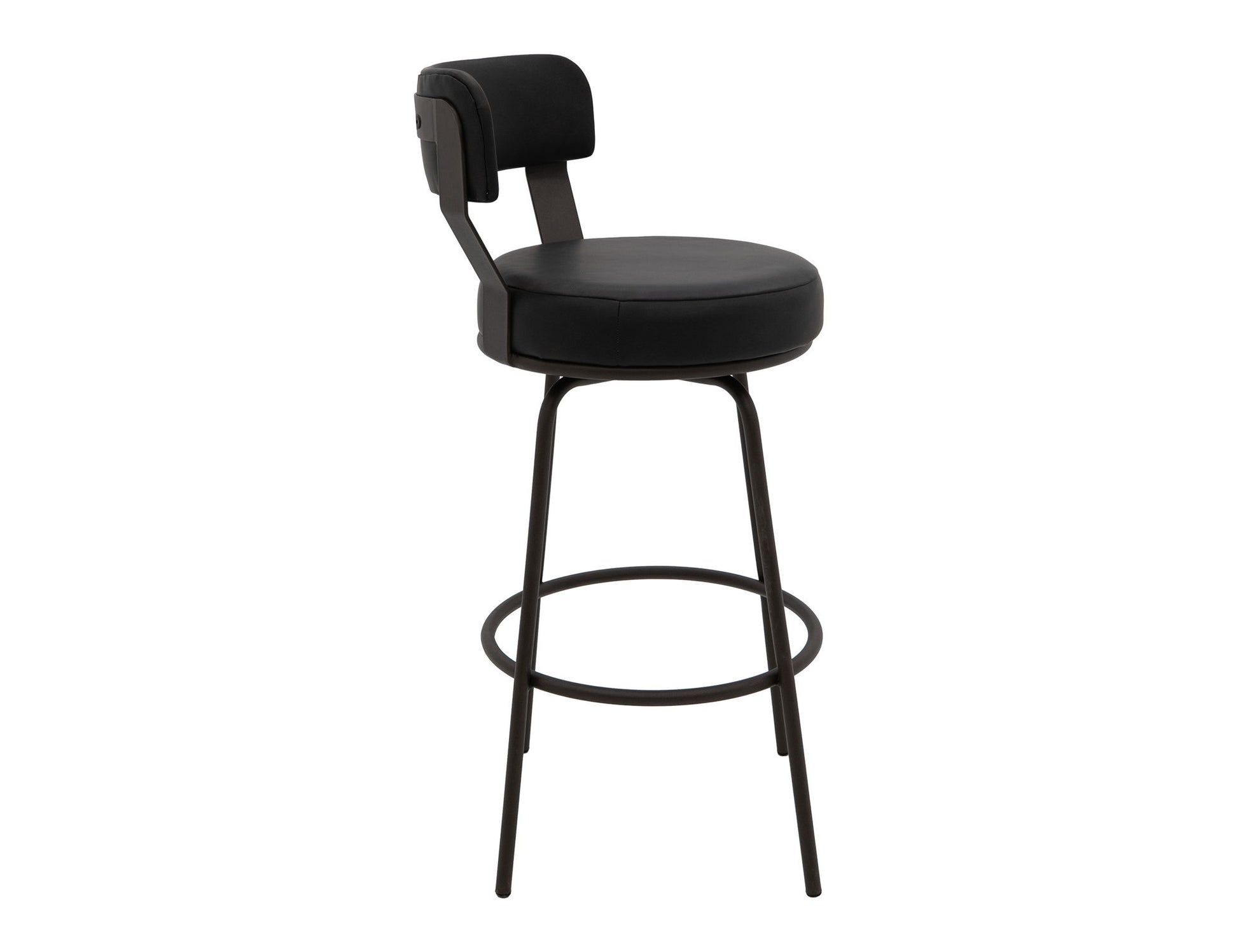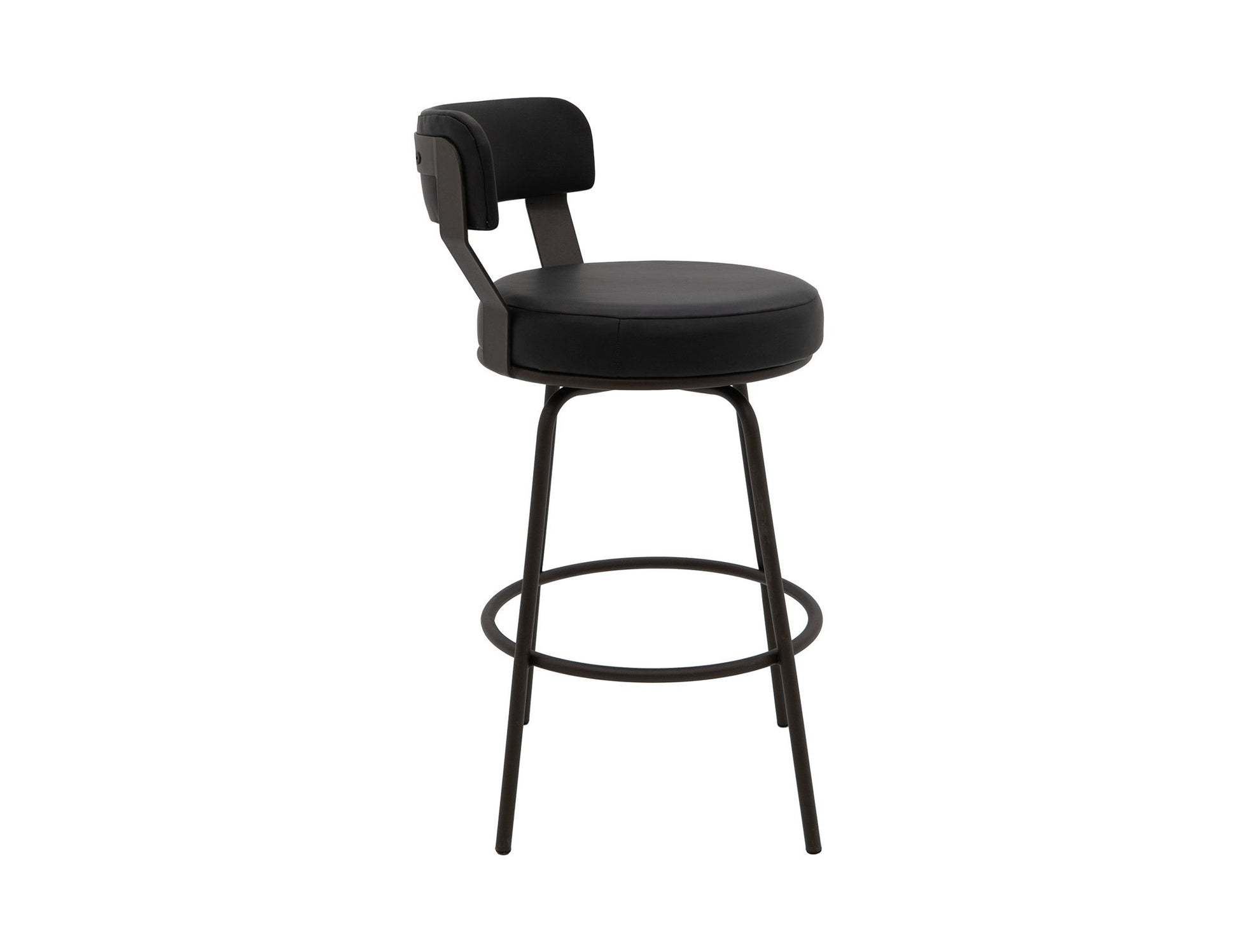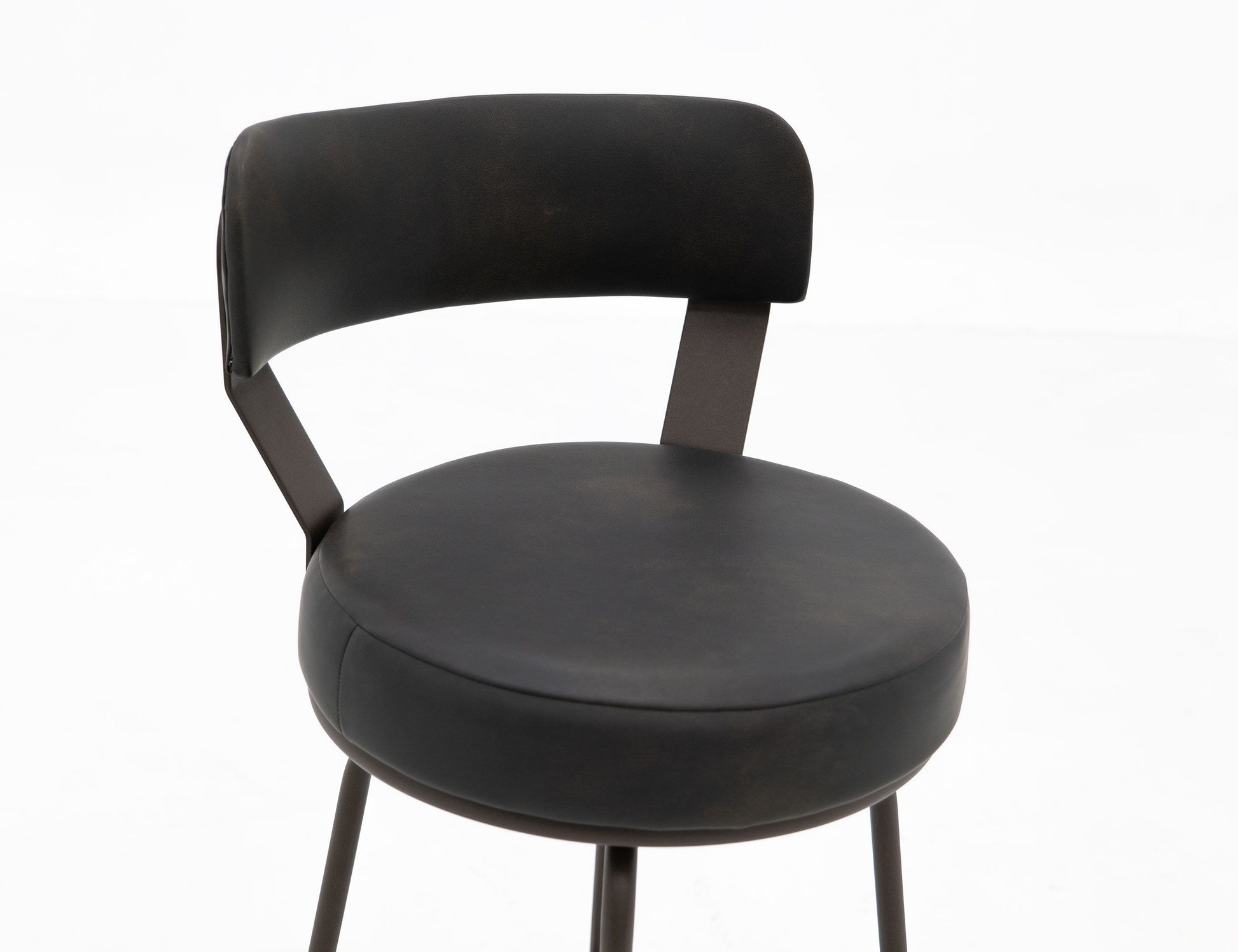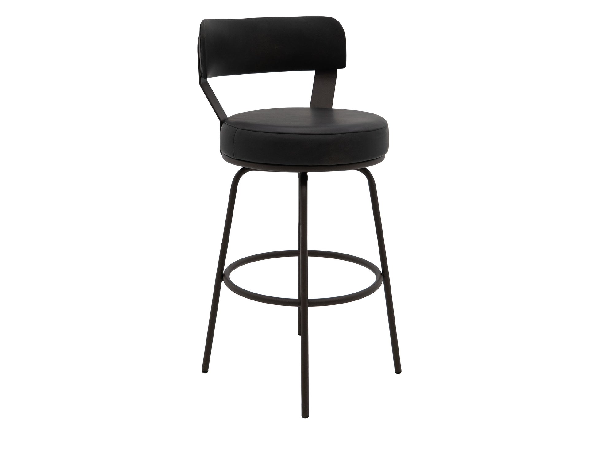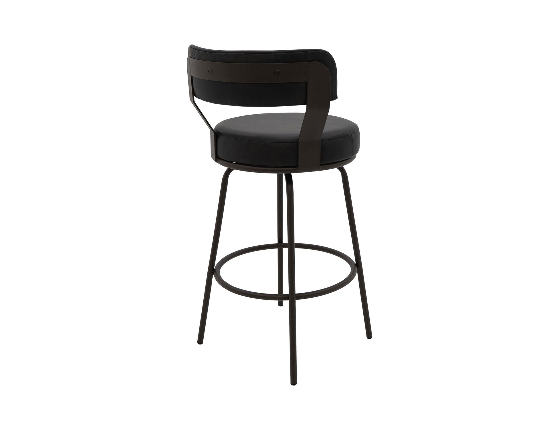 Wooden Frame & Metal Base, Upholstered Barstool. Introducing the Maison Bar Stool, a stylish and comfortable addition to your modern space. The frame features a black matte powder-coated finish that resists chipping, ensuring both durability and lasting beauty. The low, minimalistic backrest complements the seat, adding an elegant touch to the design.