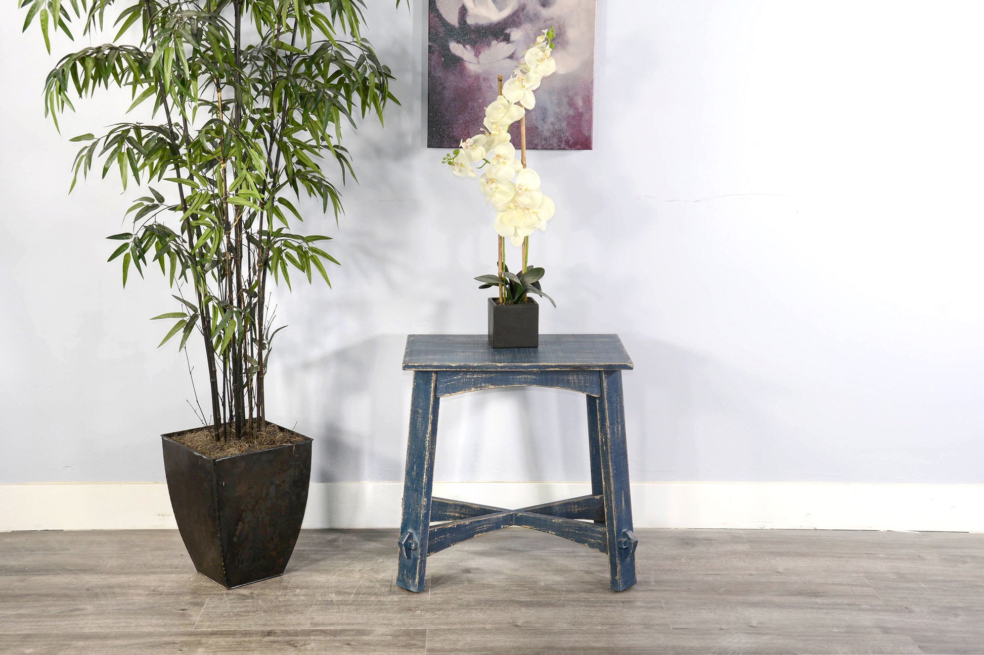 Marina - Farmhouse Mahogany Wood Chair Side Table - Ocean Blue