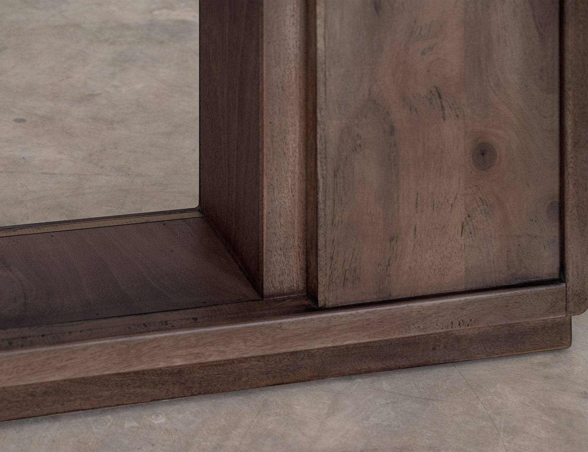 Fireplace Console. Introducing The Mezquite Mantel Fireplace: This exquisite collection is meticulously handcrafted from sustainable mango wood. Its distressed finish gracefully accentuates the natural richness of the wood grain, while its captivating and eclectic design elevates it to a true statement piece that can effortlessly enhance the ambiance of any room in your home.