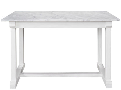 The Elena Counter Table is a delightfully modern furnishing, built with a smooth stone top paired with a convenient storage drawer and a fresh white finish.