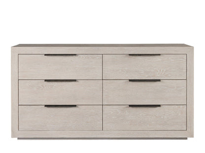 Defined by a clean Quartz-finished wood and textured bronze pulls, the Huston Dresser features six roomy drawers and convenient jewelry storage.