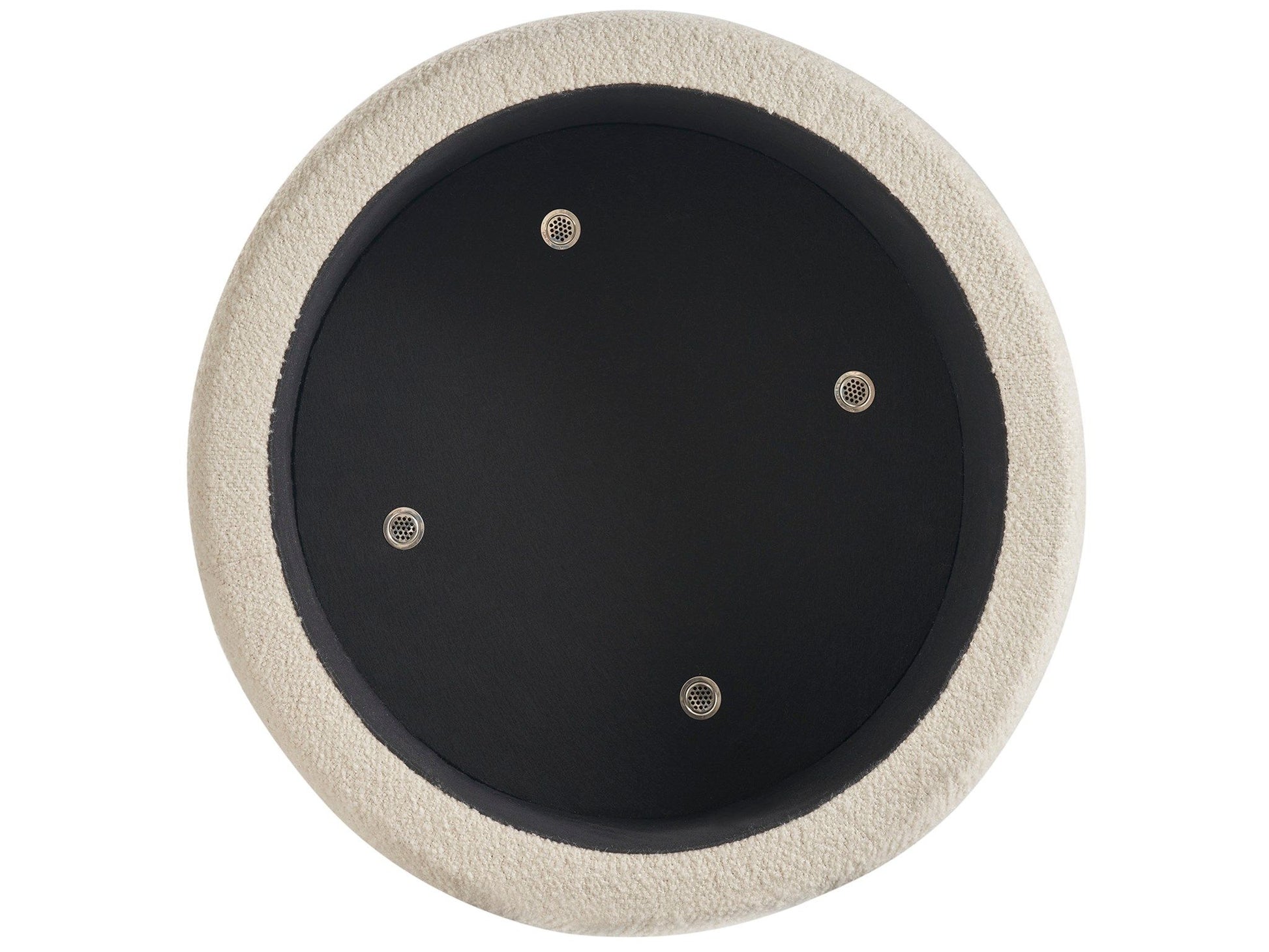 The Obi Storage Ottoman is a fully rounded, functional masterpiece upholstered in the soft Berber Snow fabric. Its top lid reveals convenient inside storage, while five casters ensure mobility. The oversized horizontal tufting detail adds a rich, textural dimension to its fully upholstered body, making it a plush, visually engaging piece perfect for adding comfort and style to any room.