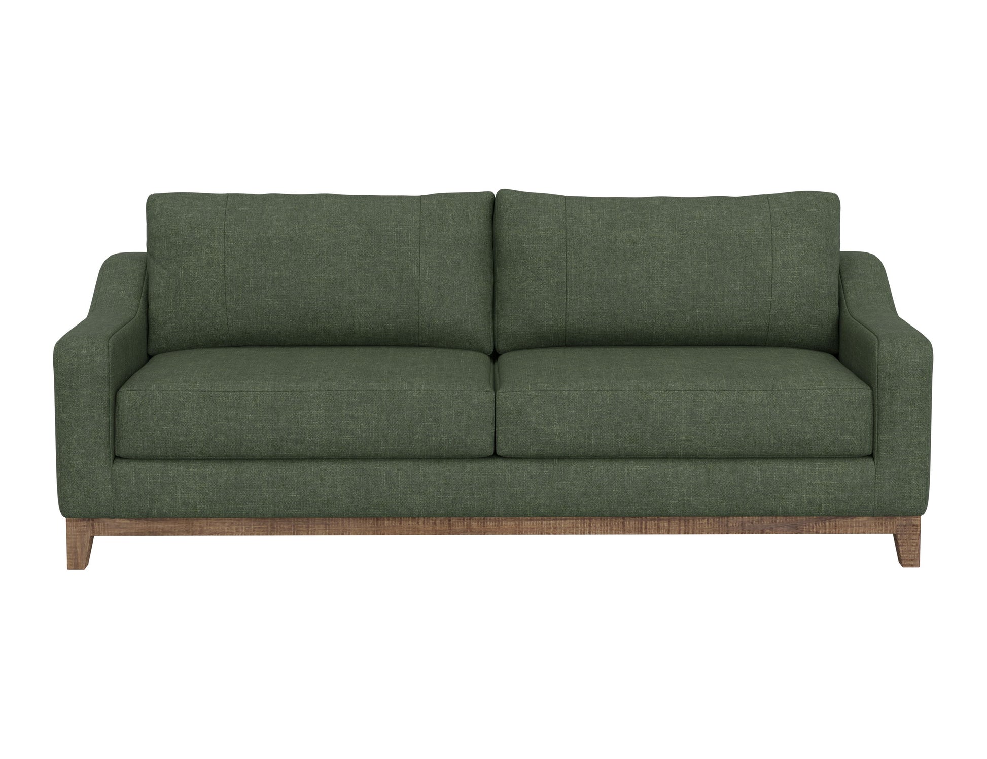 Wooden Frame & Base, Sofa. The Olivo collection seamlessly blends clean lines with a harmonious fusion of both organic and geometric shapes, offering unparalleled comfort for your space with its mid-century modern style, marked by subtle curves on padded armrests.