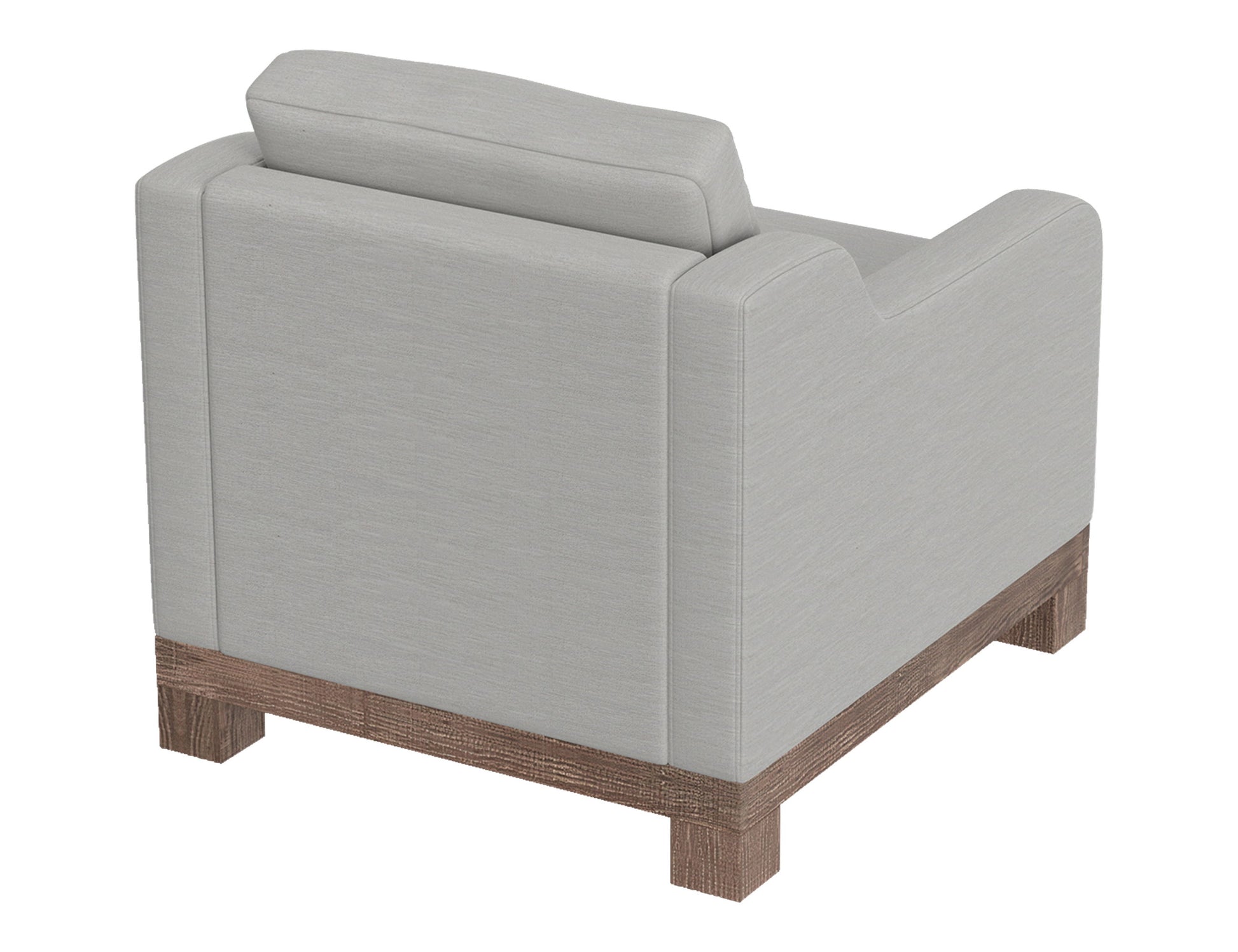 Wooden Frame & Base, Armchair. With its chunky, wide silhouette, the Samba collection infuses your living room with a touch of traditional charm. Supported by a sturdy frame crafted from solid pine wood, it rests gracefully on low-profile block feet with a rich brown hue.