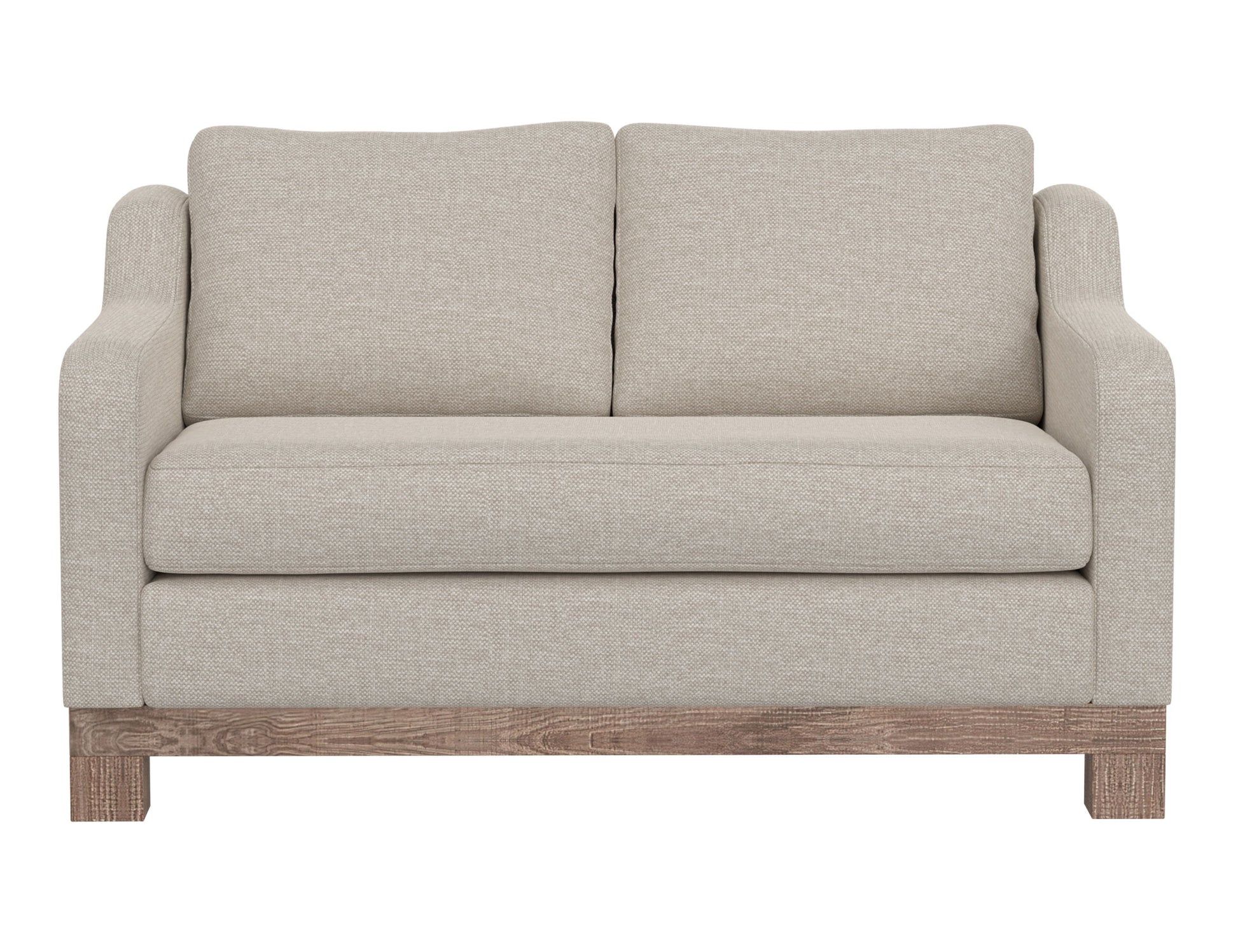 Wooden Frame & Base, Two-Cushion Loveseat. With its chunky, wide silhouette, the Samba collection infuses your living room with a touch of traditional charm. Supported by a sturdy frame crafted from solid pine wood, it rests gracefully on low-profile block feet with a rich hue.