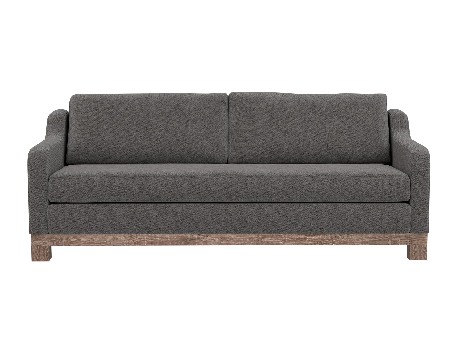 Wooden Frame & Base, Two-Cushion Sofa. With its chunky, wide silhouette, the Samba collection infuses your living room with a touch of traditional charm. Supported by a sturdy frame crafted from solid pine wood, it rests gracefully on low-profile block feet with a rich hue. Two-cushion sofa.