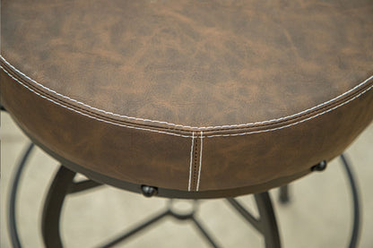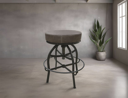 Upholstered Seat Adjustable 24-30" Swivel Iron Base Barstool. Inspired by industrial design, our adjustable swivel barstool is the ideal complement to any space. Featuring an upholstered faux leather padded seat and a stunning hand-forged black metal base, it not only offers comfort but also adds a distinctive touch of style.