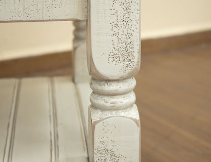4 Drawer Cocktail Table. Exuding farmhouse chic with just the right touch of old-world charm, the Stone Collection is meticulously crafted from solid pine wood. The wood is lightly distressed, showcasing a white finish and complemented by weathered gray tops.