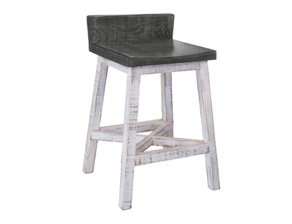 Stone - 24" Stool With Wooden Seat (Set of 2) - Antiqued Ivory / Weathered Gray