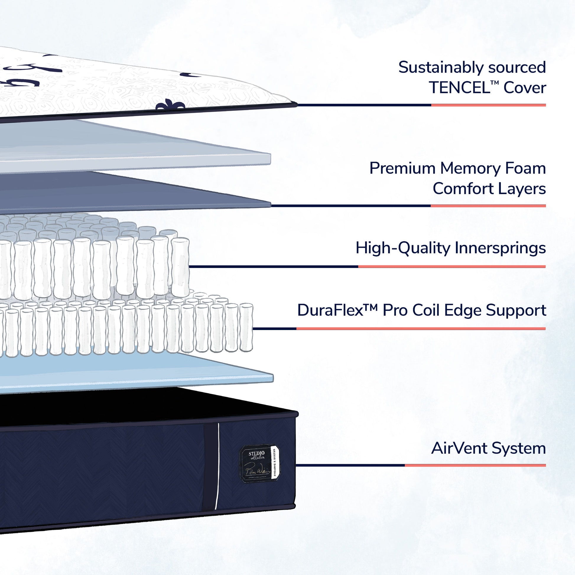 The Stearns & Foster Studio Collection features quality you can see and feel with high-quality materials like supportive innersprings, silky-soft covers and comfortable, plush memory foam.