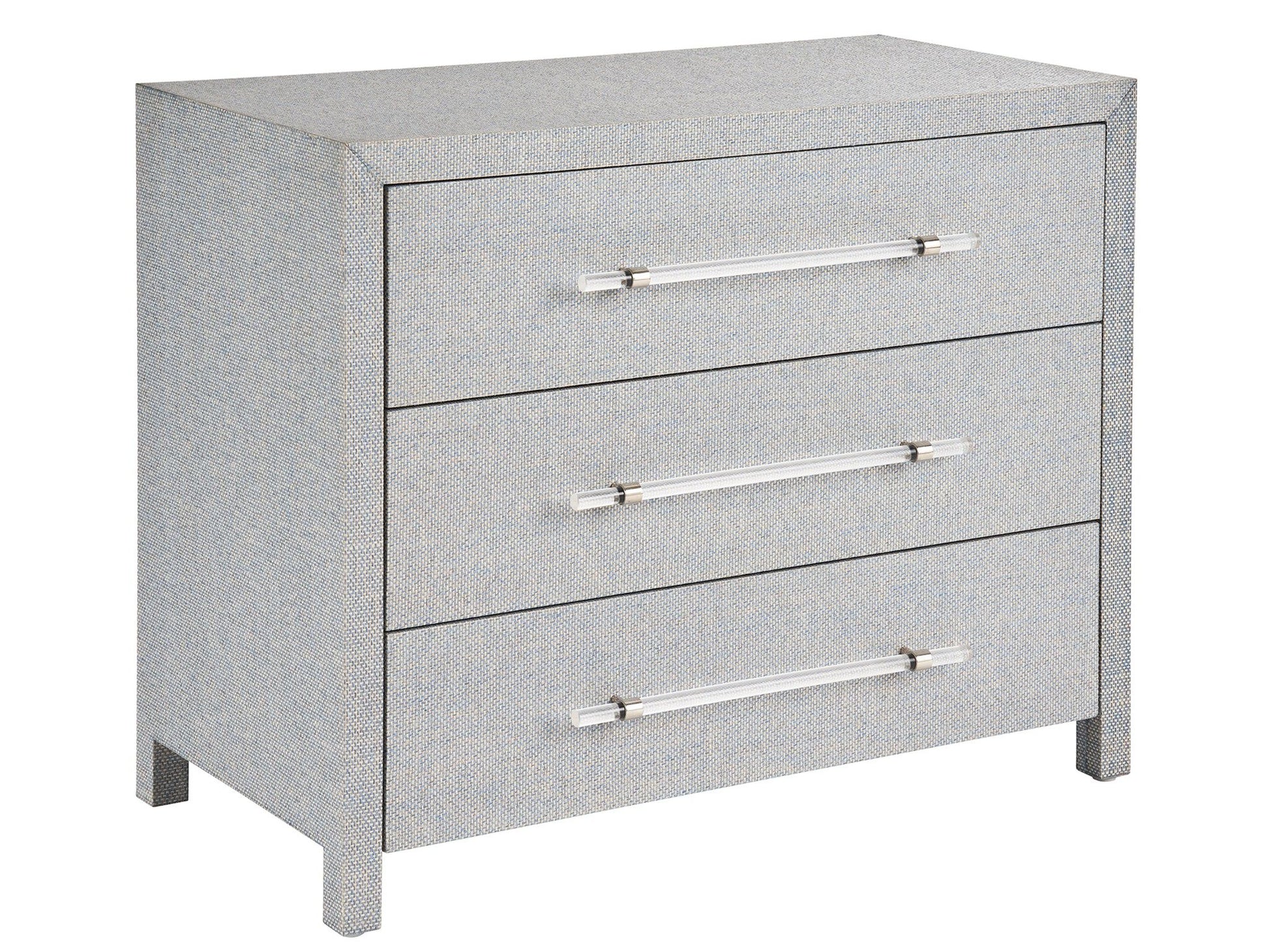 The textured Bimini Chest is a true gem with a blue, wallpaper-wrapped body offset by long acrylic pulls. Bring an instant pop of color and storage into any interior with this serene selection.