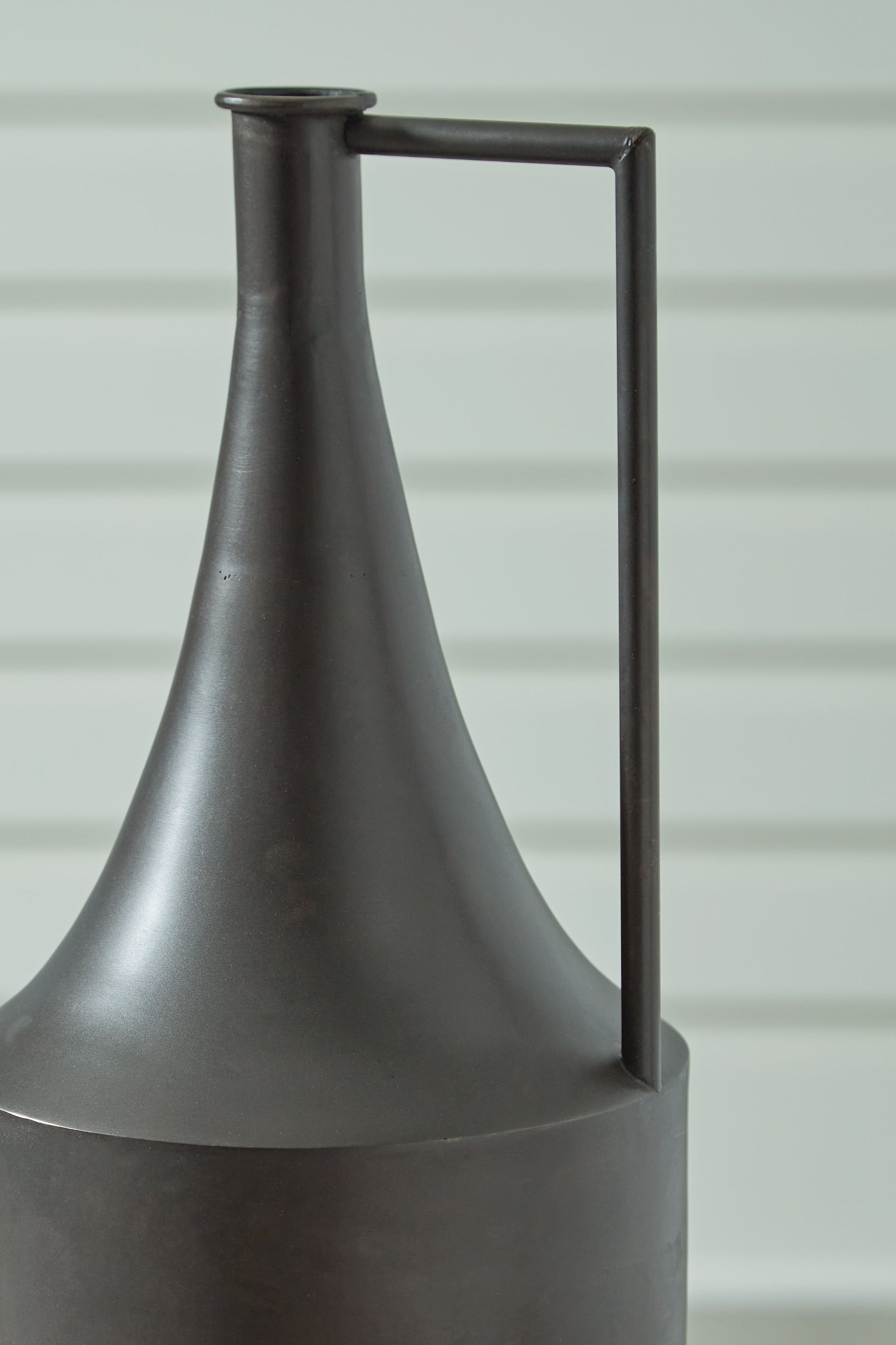Chic on a tabletop or shelf, this vase is an eye-catching accent. Its angular handle provides a sharp, stunning geometric contrast to the curved neck. Finished in a distressed hue, this piece plays well in spaces ranging from casual to contemporary.